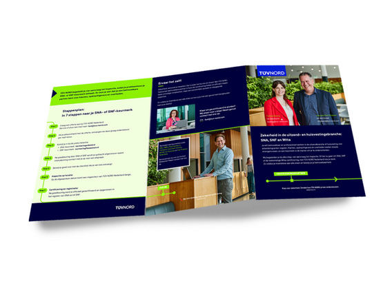 Deze brochure legt helder uit wat de SNA-, SNF- en aankomende Wtta-certificeringen inhouden, welke voordelen ze bieden en hoe TÜV NORD Nederland je stap voor stap begeleidt naar een succesvolle certificering.