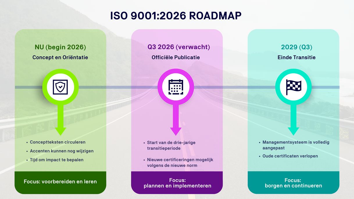 De wereld van kwaliteitsmanagement staat niet stil. De meest toegepaste norm ter wereld, de ISO 9001, wordt momenteel herzien. Hoewel de definitieve versie (ISO 9001:2026) naar verwachting kort na de zomer, in het derde kwartaal van 2026, wordt gepubliceerd, zijn de contouren al duidelijk. Hoewel de definitieve versie (ISO 9001:2026) pas in 2026 wordt verwacht, zijn de contouren al duidelijk. Geen radicale breuk met het verleden, maar een logische evolutie die jouw organisatie helpt om toekomstbestendig te blijven.